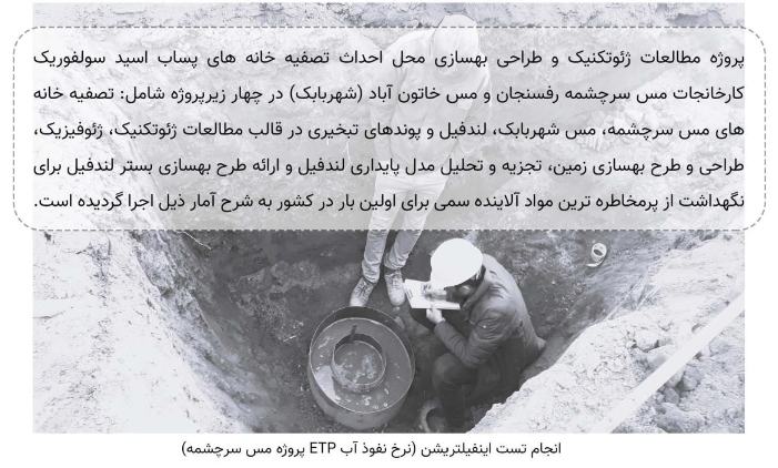 پروژه مطالعات ژئوتکنیک و طراحی بهسازی کارخانجات مس سرچشمه رفسنجان و مس خاتون آباد(شهربابک)
